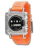 01 The One Midsize Binary Fashion Watch is an eye-catching conversation starter as well as a unique decodable timepiece. Constructed with a strong resin case, the unique timepiece includes a resin bezel, and an orange polyurethane wristband with an adjustable buckle clasp. A durable acrylic window shields the black dial face, which features white LED lights that display the time in binary code. To crack the code, simply add the numbers on the top row to equal the hour. The numbers on middle and bottom rows add up to the minute. Powered by digital-quartz movement, the watch is water resistant to 99 feet. It comes packaged in a sleek metal 01-logoed protective case.